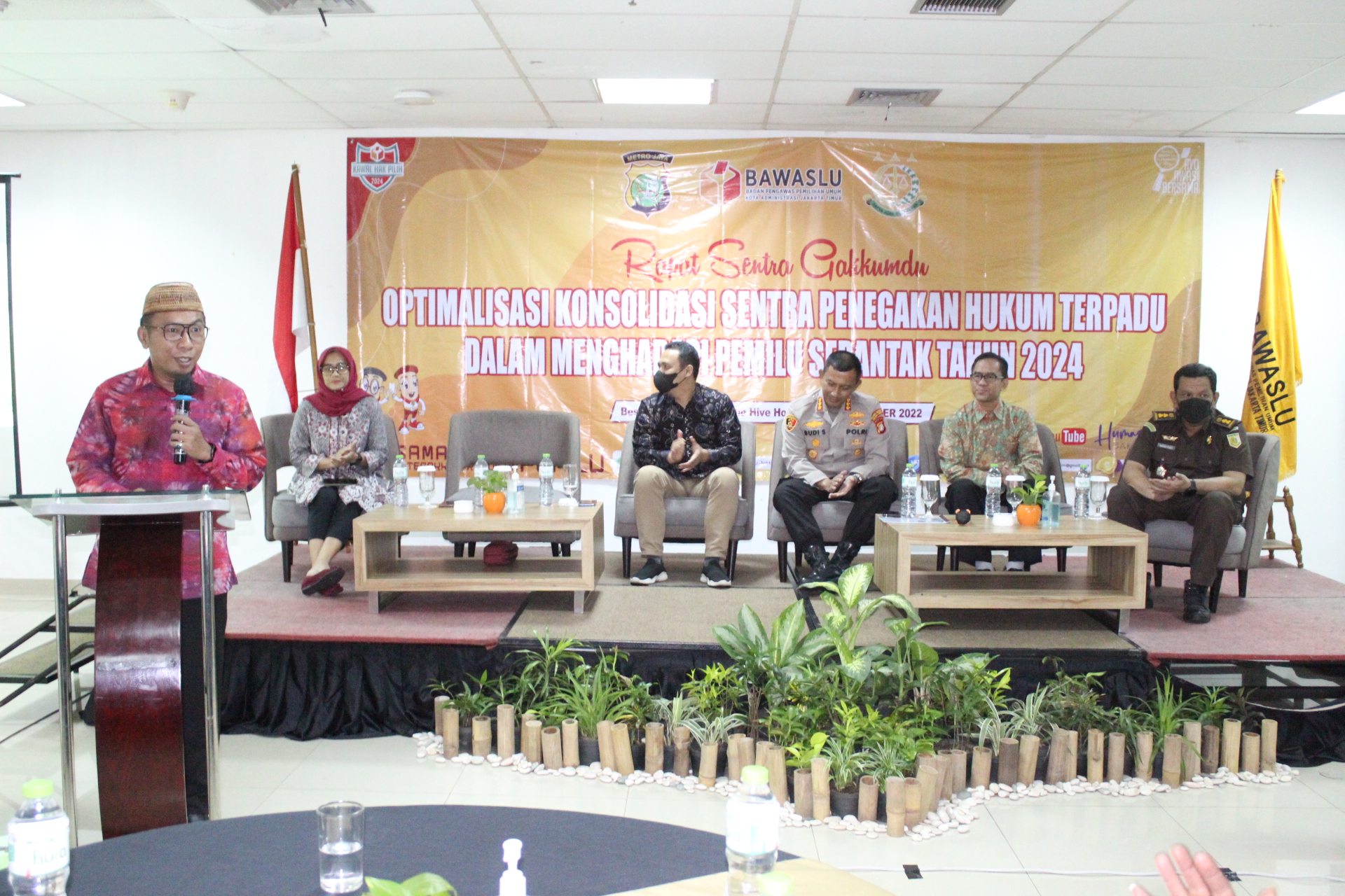 - Dalam menghadapi pelaksanaan pemilu 2024 diharapkan Sentra Gakkumdu yang terdiri dari unsur Bawaslu, Kepolisian dan Kejaksaan mampu memiliki kesepemahaman dalam penegakkan tindak pidana pemilu. Baik yang bersifat formil (proses penegakkannya) maupun materil (unsur-unsur pidanannya).