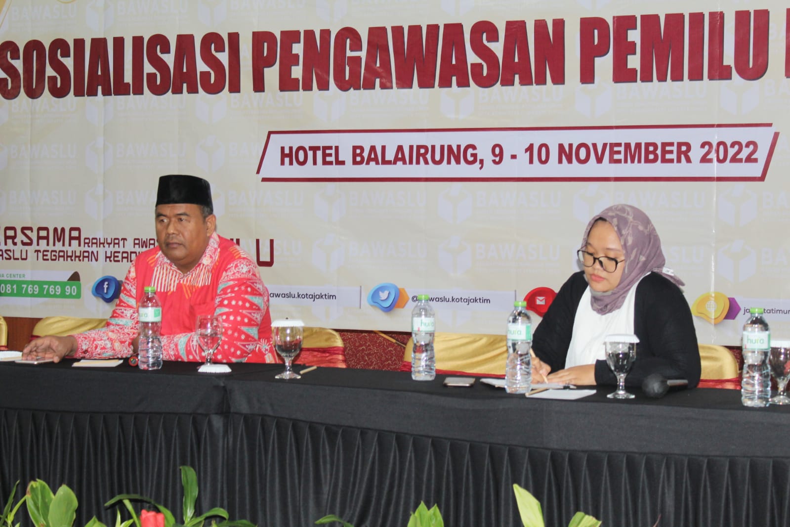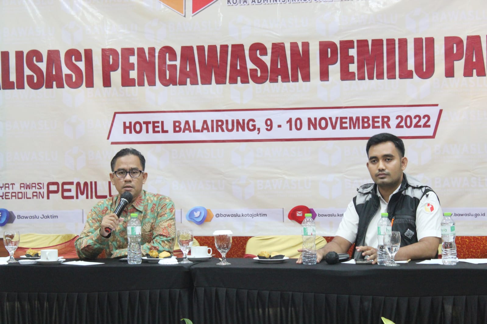Bawaslu Kota Jaktim menghadirkan Narsum yang memberikan materi Dasar-dasar pengawasan partisipatif diberikan kepada jajaran Panwaslu Kecamatan agar mampu untuk meningkatkan partisipasi kepada masyarakat.