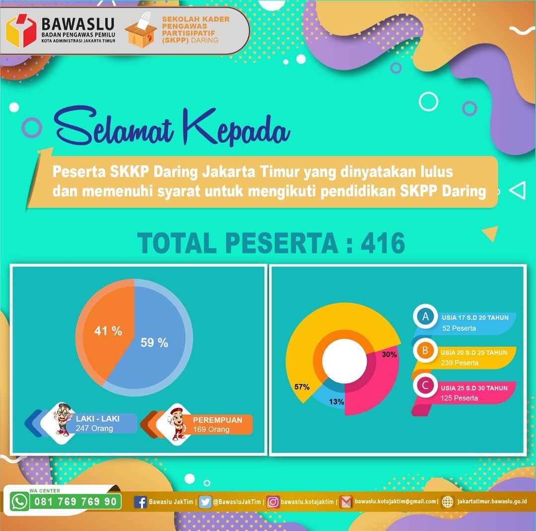 Jakarta, Bawaslu Jakarta Timur - Bawaslu RI, hari ini telah mengumumkan secara resmi daftar nama-nama yang telah memenuhi syarat sebagai Peserta Sekolah Kader Pengawas partisipatif (SKPP) Daring