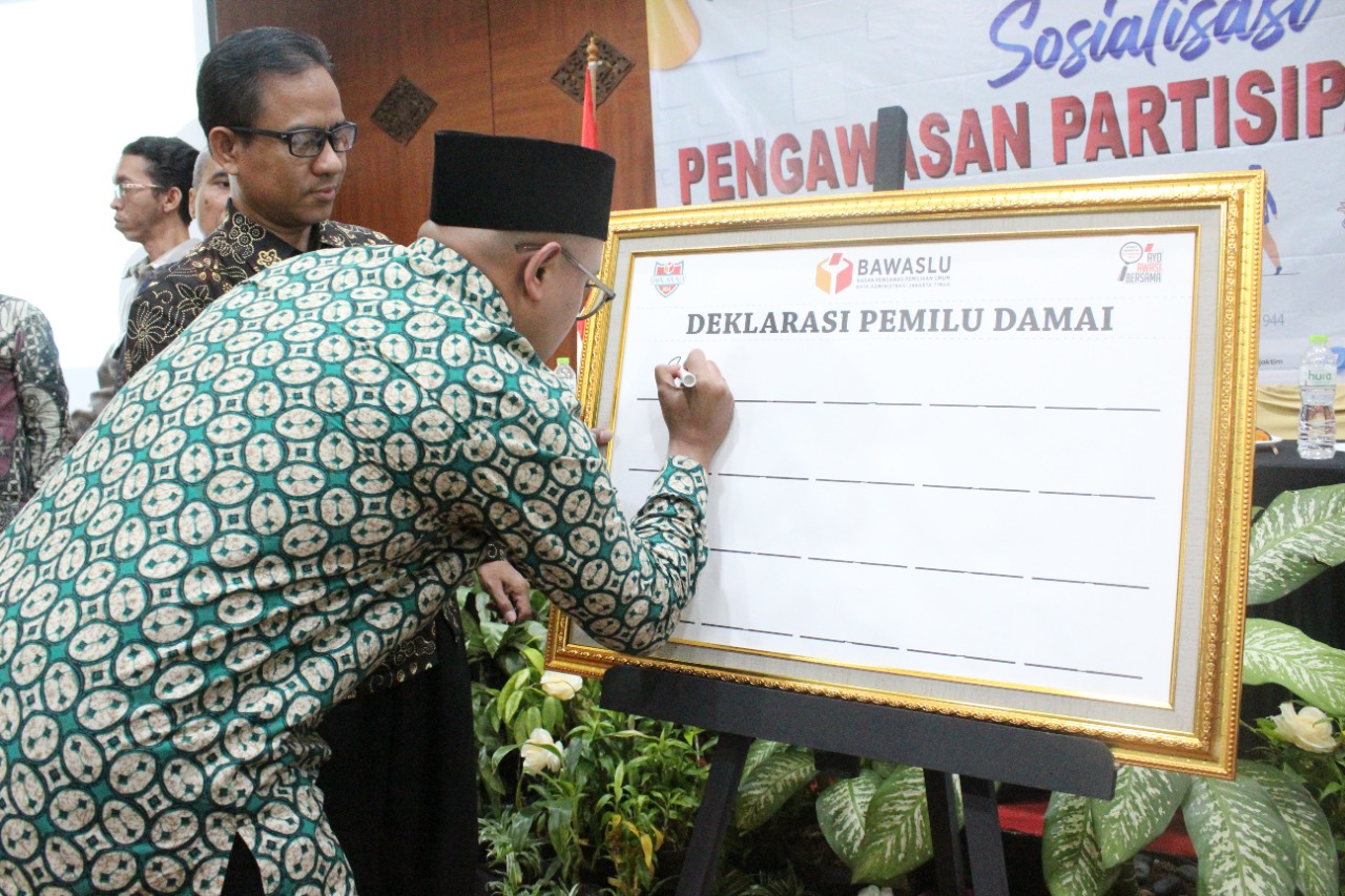 Turut hadir dalam penandatanganan piagam deklarasi pemilu damai, pimpinan Bawaslu Provinsi Reki Putra Jaya, Kesbangpol Kota Jakarta Timur, Dewan Kota Jakarta Timur, FKUB Kota Jakarta Timur, PPUA Disabilitas, Himpinan Wanita Disabilitas, dan beberapa organisasi kepemudaan lainnya.