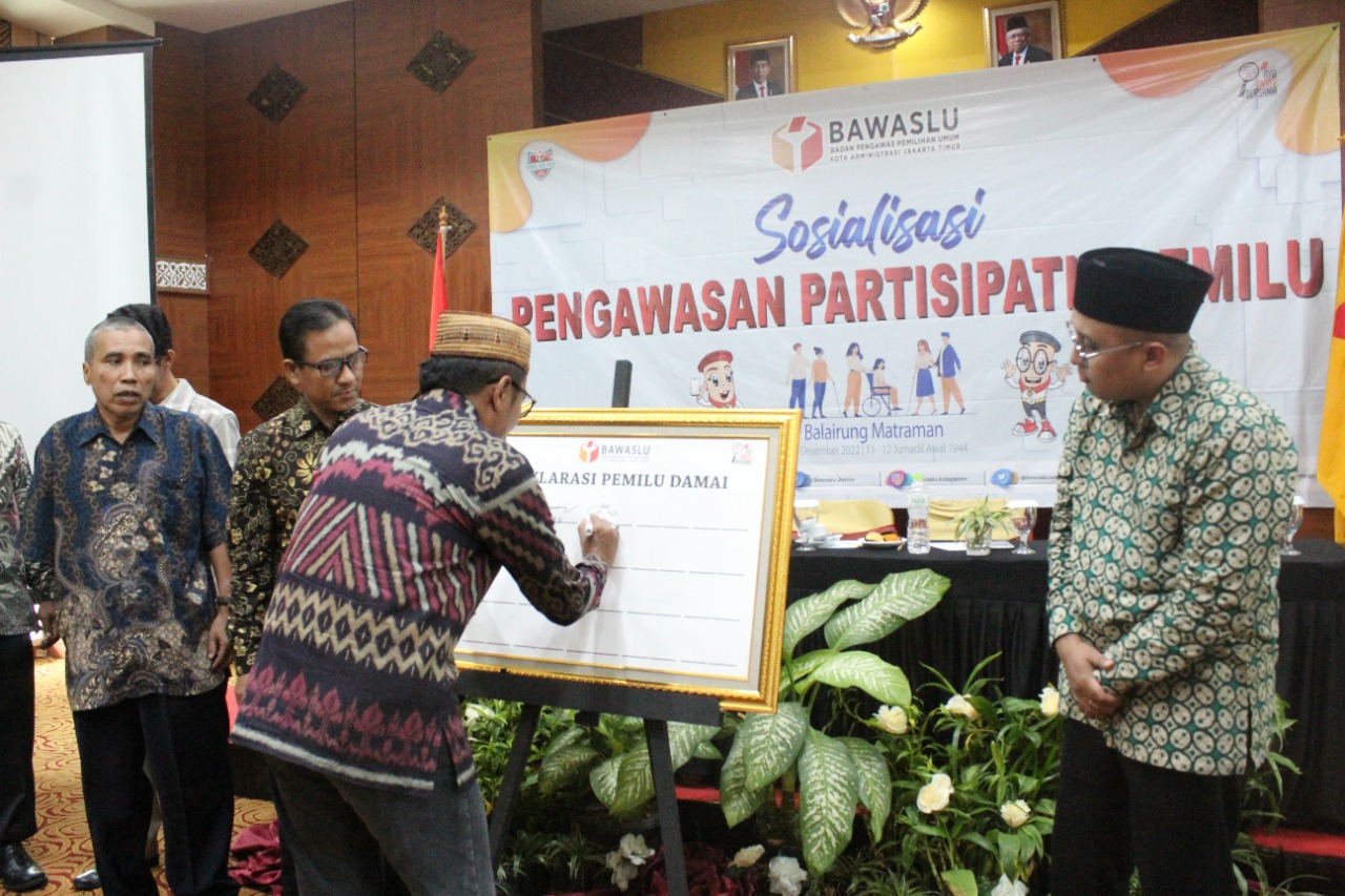 Deklarasi pemilu damai tersebut dilaksanakan dengan maksud agar pemilu serentak tahun 2024 dapat berjalan lancar, aman, damai dan sesuai dengan aturan perundang-undangan yang berlaku. Adapun poin-poin yang disepakati dalam deklarasi pemilu damai yang dilaksanakan pada Senin, 5 Desember 2022 di Hotel Balairung Matraman adalah sebagai berikut: (1) Mengawal proses penyelenggaraan pemilu yang dilaksanakan secara langsung, umum, bebas, rahasia, jujur dan adil sesuai dengan ketentuan peraturan perundang-undangan. (2) Senantiasa menjaga integritas dan siap berkolaborasi dengan Bawaslu dalam dalam mengawasi penyelenggaraan pemilu serentak 2024. (3) Menolak segala bentuk Politik SARA, Hoax dan ujaran kebencian yang dapat memecah belah integrasi bangsa dengan memegang teguh moral dan etika politik dengan menjunjung tinggi nilai-nilai luhur persatuan indonesia. (4) Menolak politik uang sebagai bentuk politik pragmatis sesaat yang memgancam kelangsungan pemerintahan yang bersih, jujur dan bijaksana. (5) Berpartisipasi melaporkan dugaan pelanggaran pemilu kepada Bawaslu demi mewujudkan keadilan pemilu. (6) Mendukung sinergitas dan soliditas Pemerintah Daerah, TNI, POLRI tokoh masyarakat dan seluruh elemen masyarakat demi terciptanya penyelenggaraan pemilu yang aman, damai dan kondusif di wilayah Jakarta Timur