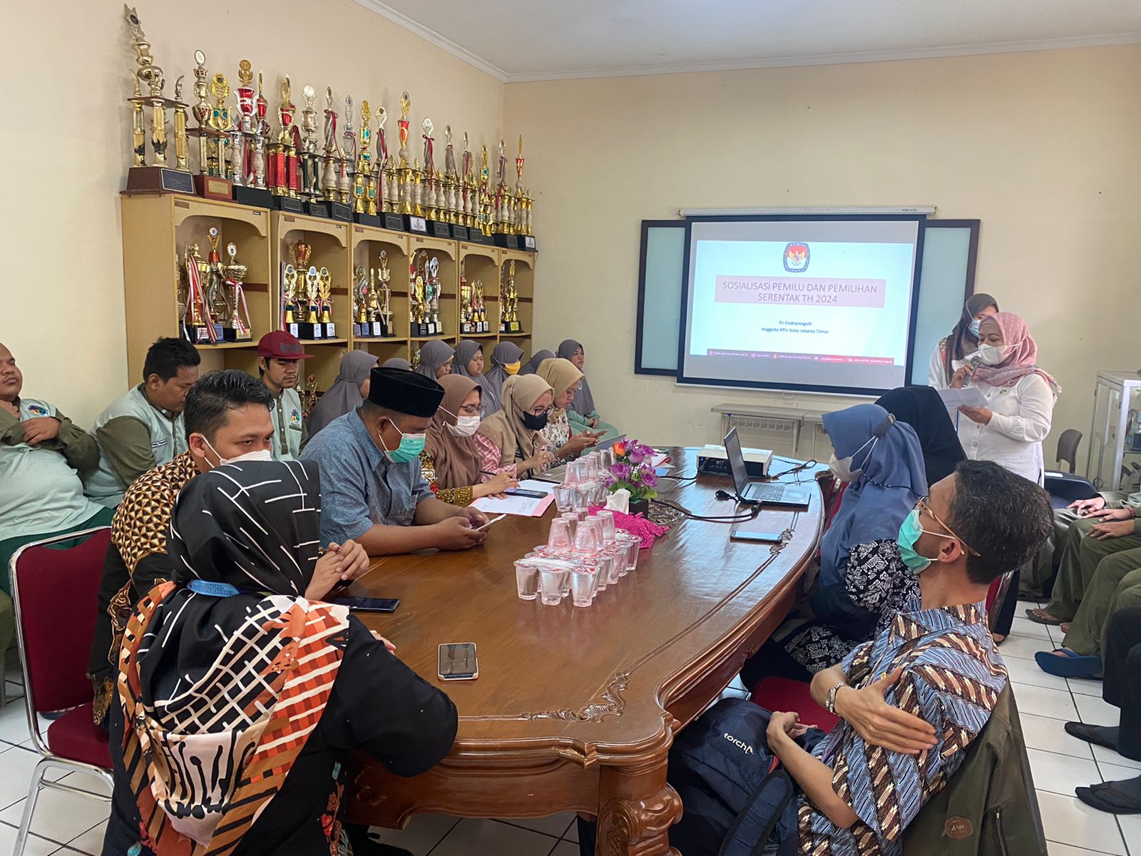 Jakarta, Bawaslu Jakarta Timur - Anggota Bawaslu Kota Jakarta Timur Kordiv. Pengawasan dan Hubungan Antar Lembaga Marhadi bersama staff pelaksana teknis Pengawasan menghadiri Sosialisasi Pemilu Serentak 2024 yang diselenggarakan KPU Kota Jakarta Timur di Panti Sosial Binaan Netra Cahaya Batin ,Jl. Dewi Sartika No.200 Cawang Jakarta Timur, Kamis( (14/07).