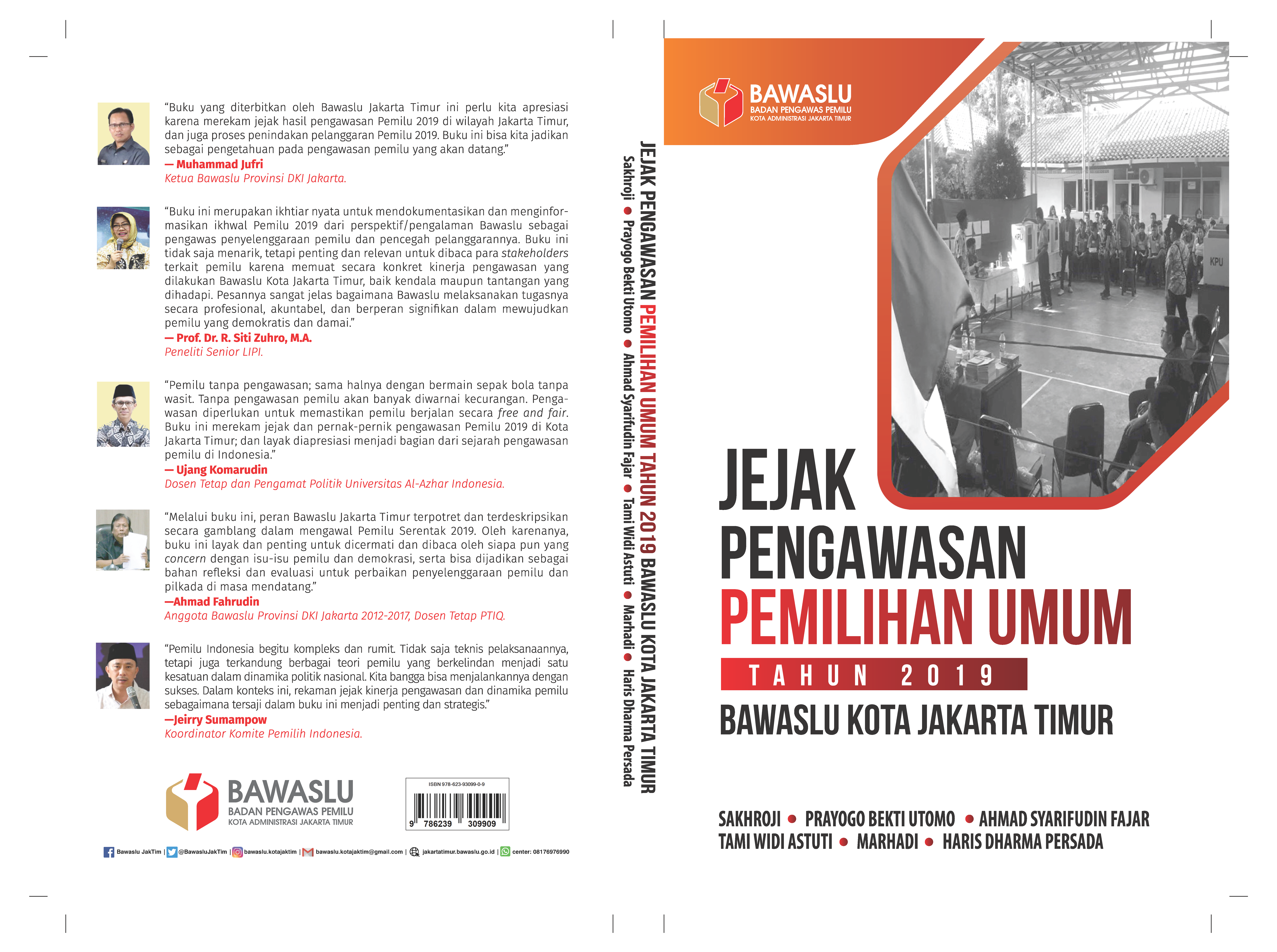 Pengawasan yang dilakukan di wilayah Jakarta Timur dengan total pemilih kurang lebih di atas dua juta dan memiliki 10 kecamatan serta 65 kelurahan adalah bukan hal yang sangat mudah. Diperlukannya kerja keras dan soliditas antara Bawaslu Kota Jakarta Timur dengan seluruh pemangku kepentingan untuk menyukseskan penyelenggaraan pemilu yang demokratis, bermartabat dan berkualitas. Buku ini telah menggambarkan usaha-usaha yang telah dilakukan oleh Bawaslu Kota Jakarta Timur dalam mengoptimalisasikan tugas dan kewenangan yang telah diberikan.