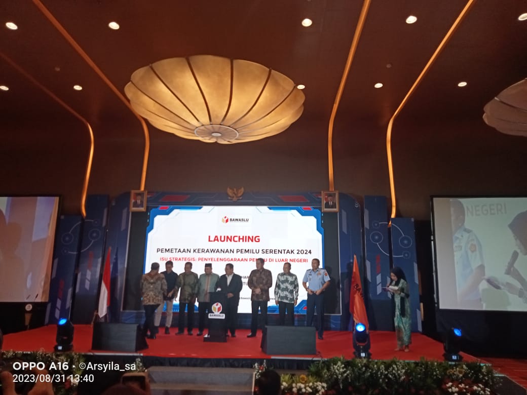 "Hari ini kita launching Pemetaan Kerawanan Pemilu serentak 2024 isu stategis penyelenggaraan Pemilu di luar negeri, agar teman-teman Partai Politik juga mengetahui kerawanan yang akan terjadi pada Pemilu tahun 2024 di luar negeri. Ada beberapa daerah dan wilayah di luar negeri yang menjadi perhatian isu krusial seperti daerah yang memiliki daftar pemilih yang cukup besar." Ujar Bagja saat menyampaikan sambutannya dalam acara Launching Pemetaan Kerawanan Pemilu serentak 2024 isu stategis penyelenggaraan Pemilu di luar negeri (31/8).