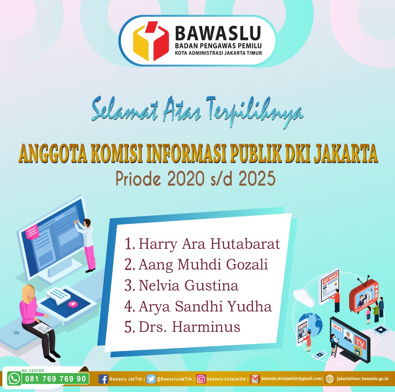 Lima orang komisioner Komisi Informasi Provinsi (KIP) DKI Jakarta resmi ditetapkan setelah sebelumnya Komisi A DPRD DKI Jakarta melakukan uji kepatutan dan kelayakan terhadap 15 kandidat.