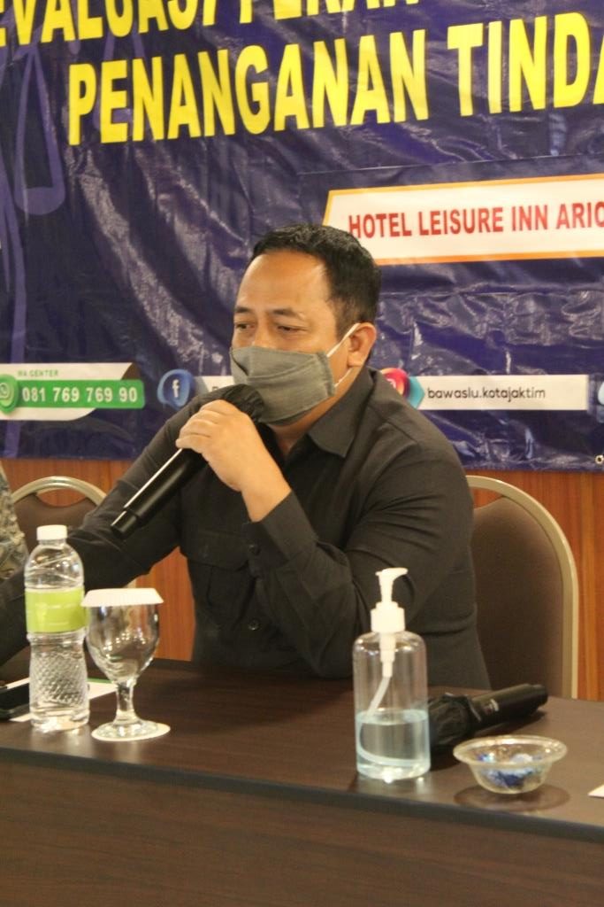 Jakarta, Bawaslu Jakarta Timur - Dalam rangka meningkatkan sinergitas penegakan hukum pelanggaran pemilu menuju penyelenggaraan Pemilu Serentak 2024, Bawaslu Kota Administrasi Jakarta Timur mengadakan kegiatan Evaluasi Peran Sentra Gakkumdu Dalam Penanganan Tindak Pidana Pemilu, acara ini berlangsung di Leisure Inn Arion Hotel, Selasa, (23/11/21).
