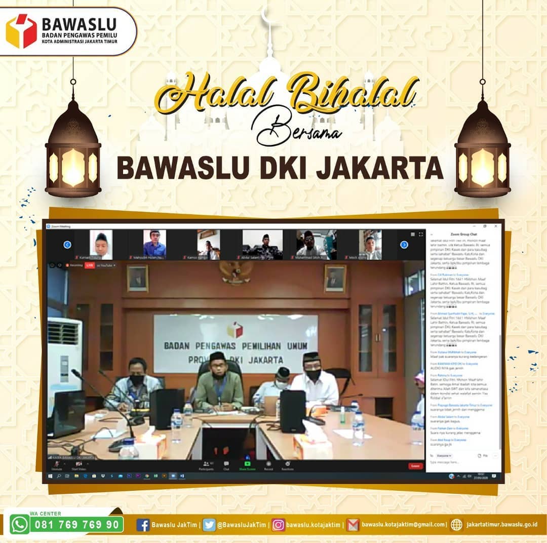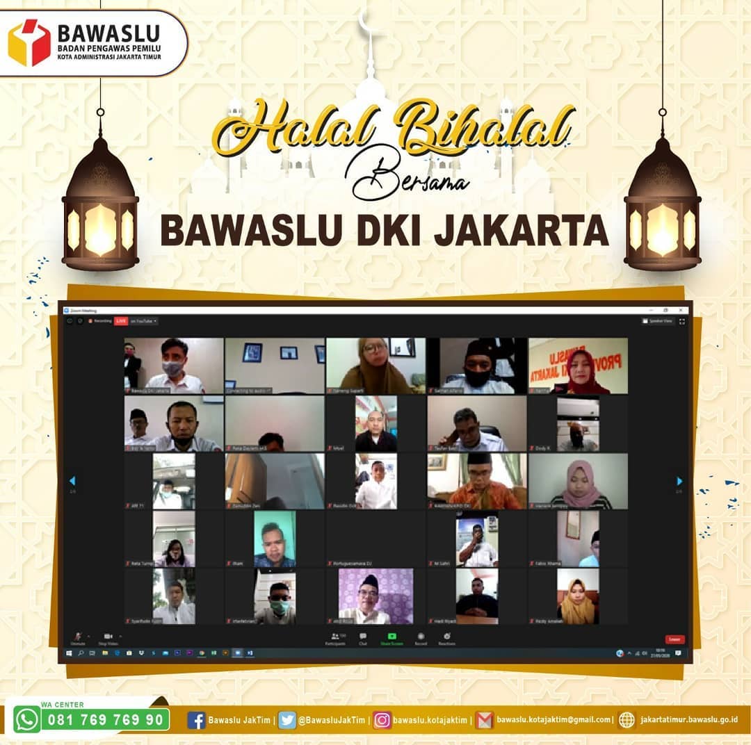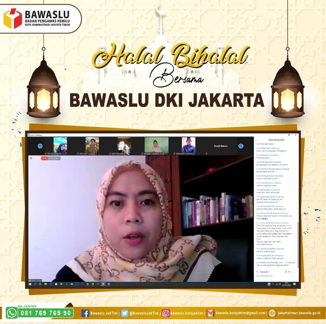 Seluruh jajaran sekretariat Bawaslu Kota Jakarta Timur menghadiri Acara Silaturahmi dan Halal Bi Halal melalui video conference tersebut. Kegiatan ini dimulai sekitar pukul 10.00 WIB. Acara Silaturahmi dan Halal bi halal ini diselenggarakan dalam suasana yang penuh kekeluargaan dan sederhana. Meskipun dalam situasi pandemi seperti ini.