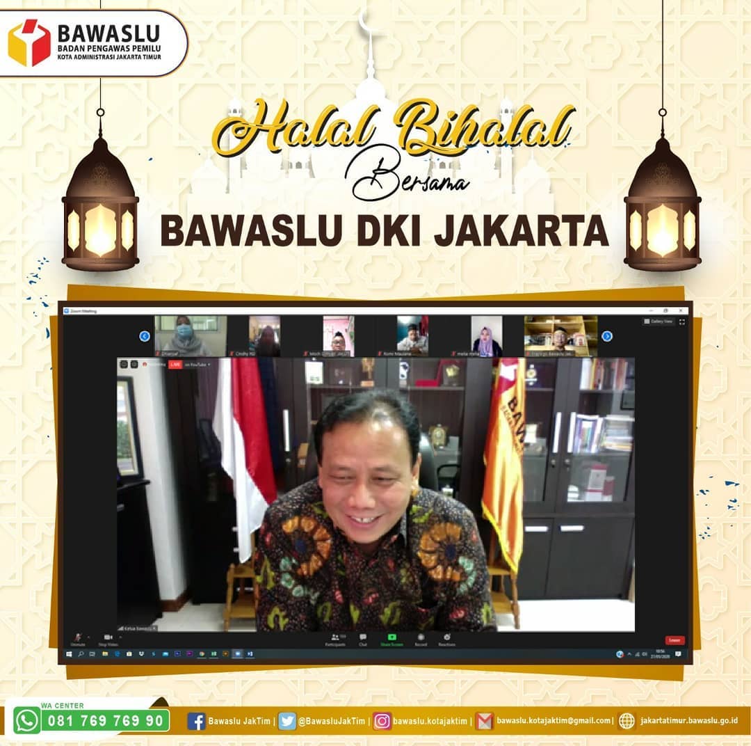 Jakarta, Bawaslu Jakarta Timur - Di tengah pandemi virus corona, Bawaslu Provinsi DKI Jakarta menggelar acara Silaturahmi dan Halal Bi Halal Idulfitri 1441 H secara virtual melalui video conference di ruang rapat kantor sekretariat Bawaslu DKI Jakarta, Rabu (27/5/2020).