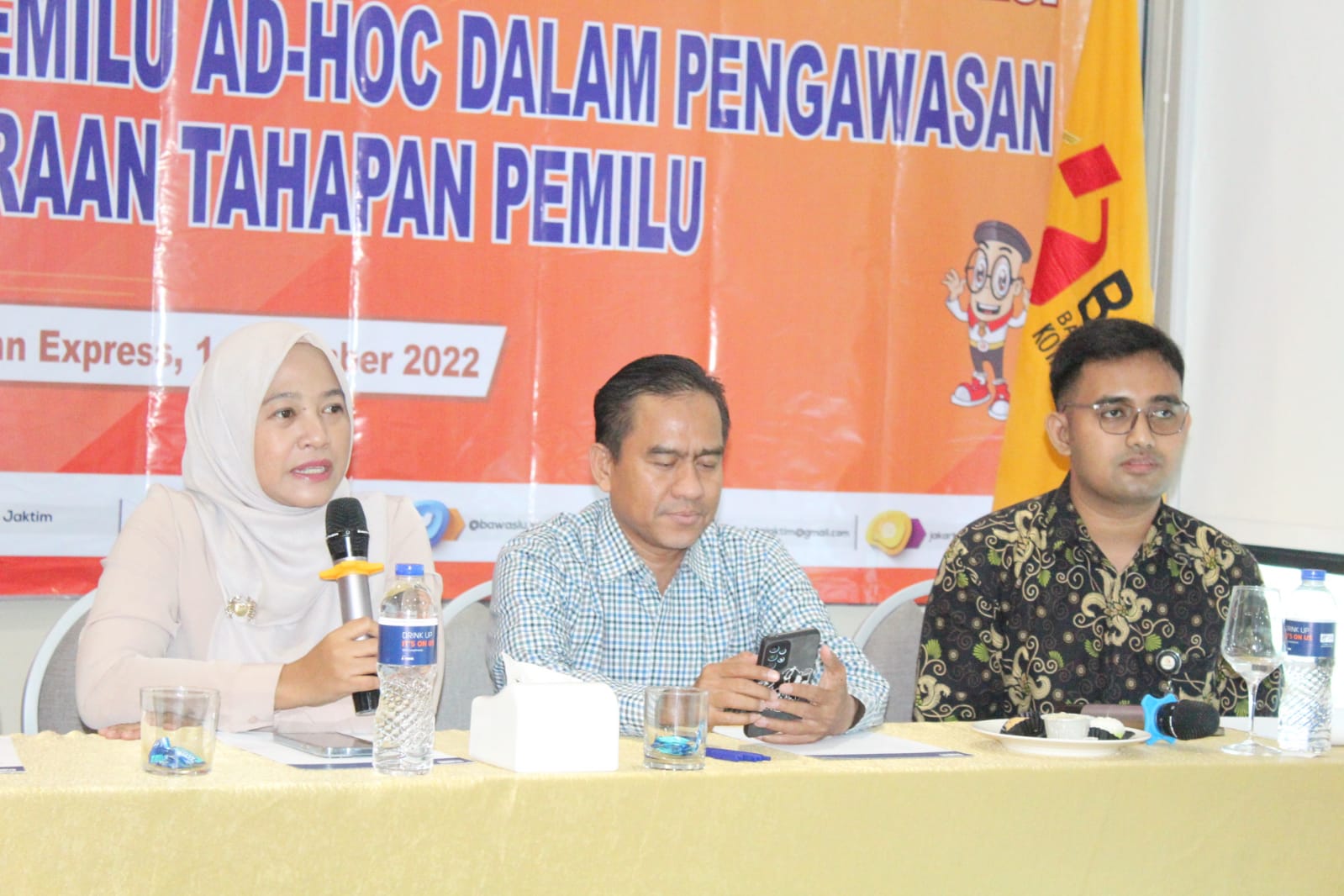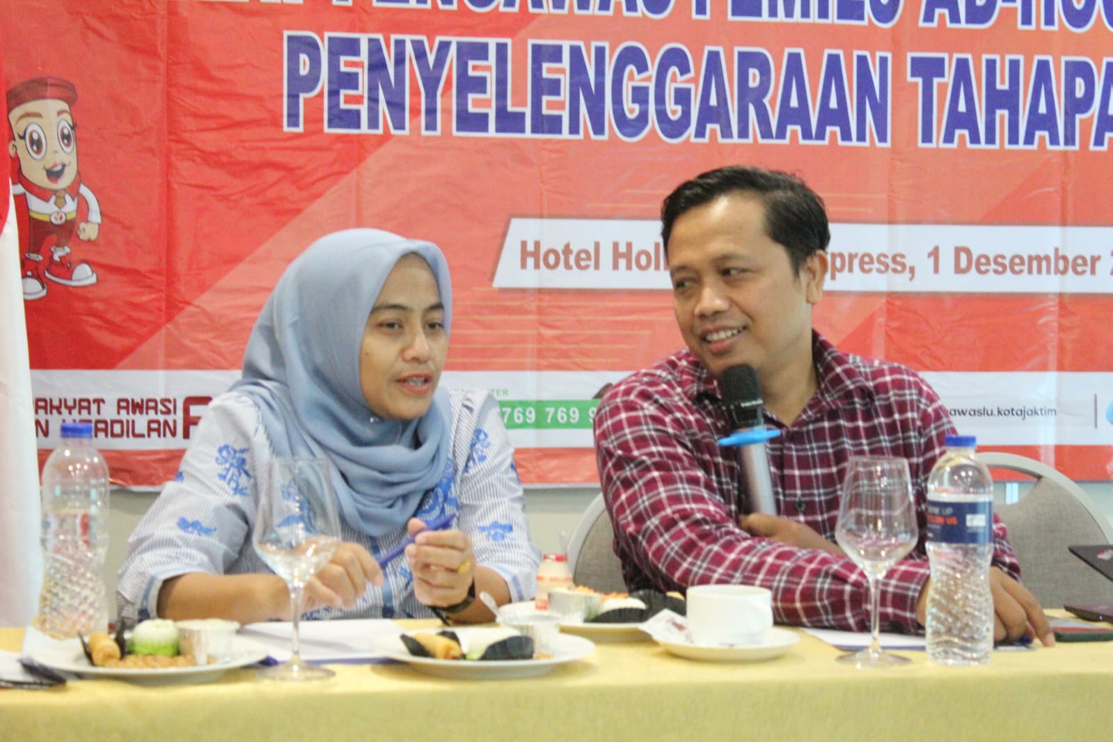 Berdasarkan penyampain materi pertama oleh Badiul Hadi selaku Manager Riset Sekretariat Nasional Forum Indonesia Untuk Transparansi Anggaran (SEKNAS FITRA) menyebutkan bahwa kuota pengawas pemilu di kelurahan sangat sedikit untuk mengawasi ribuan orang, dimana 1 kelurahan hanya 1 pengawas pemilu. Maka diperlukan peran masyarakat untuk mengkawal proses pembentukannya. Kemudian narasumber kedua Ibu Mimah Susanti selaku Komisioner KPI Pusat menyampaikan bahwa Pengawas pemilu tujuannya untuk memastikan pemilu berjalan secara luberjurdil, mewujudkan pemilu yang demokratis dan menegakkan integritas, kredibilitas, penyelenggaraan, transparansi penyelenggaraan dan akuntabilitas hasil pemilu. Oleh karena itu profil pengawas pemilu perlu diperhatikan sebagai bagian dari aspek pembentukan panwaslu kelurahan.