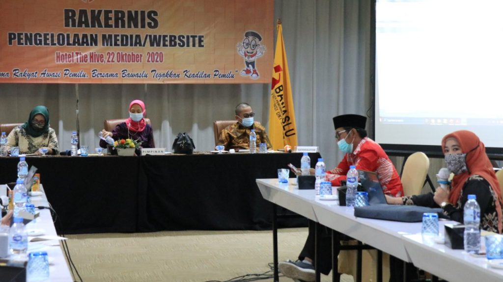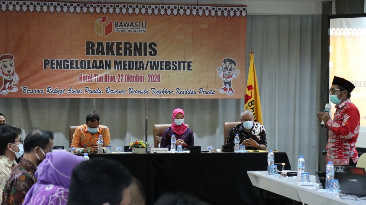 Jakarta, Bawaslu Jakarta Timur – Bawaslu Provinsi DKI Jakarta mengadakan kegiatan Rapat Kerja Teknis Pengelolaan Website dan Media social dengan tetap mematuhi Protocol Covid-19. Acara diadakan di Hotel The Hive Cawang, Jakarta Timur, Kamis,(22/10/2020). Kegiatan ini dihadiri oleh Ketua dan Anggota Bawaslu Provinsi DKI Jakarta berserta Jajarannya serta Anggota Bawaslu Kabupaten/Kota yang membidangi Kehumasan berserta staf.
