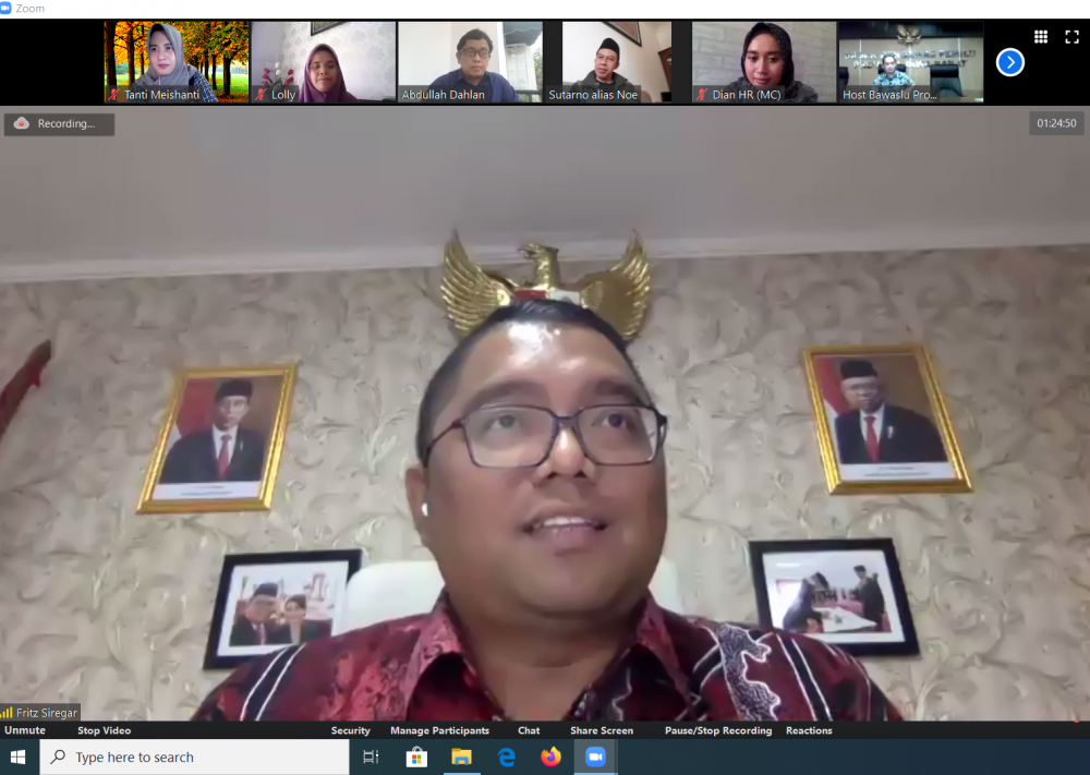 Dalam membuka diskusi, Fritz menyampaikan apresiasi atas inovasi yang dilakukan Bawaslu Jabar di tengah tantangan pandemi, baik karena dinilai paling aktif melakukan publikasi, follower Instagram tertinggi, jumlah partisipasi pendaftar SKPP daring tertinggi, maupun inovasi diskusi online yang sedang dilaksanakan.